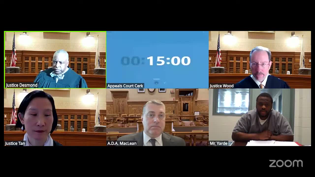 The Massachusetts Appeals Court heard oral argument in Commonwealth v. Yard, an appeal from a 2012 homicide conviction, where pro se appellant David Yard told a three‑justice panel the record contains evidence and expert analyses that were not properly considered below and that, he said, establish he did not fire the fatal shot.