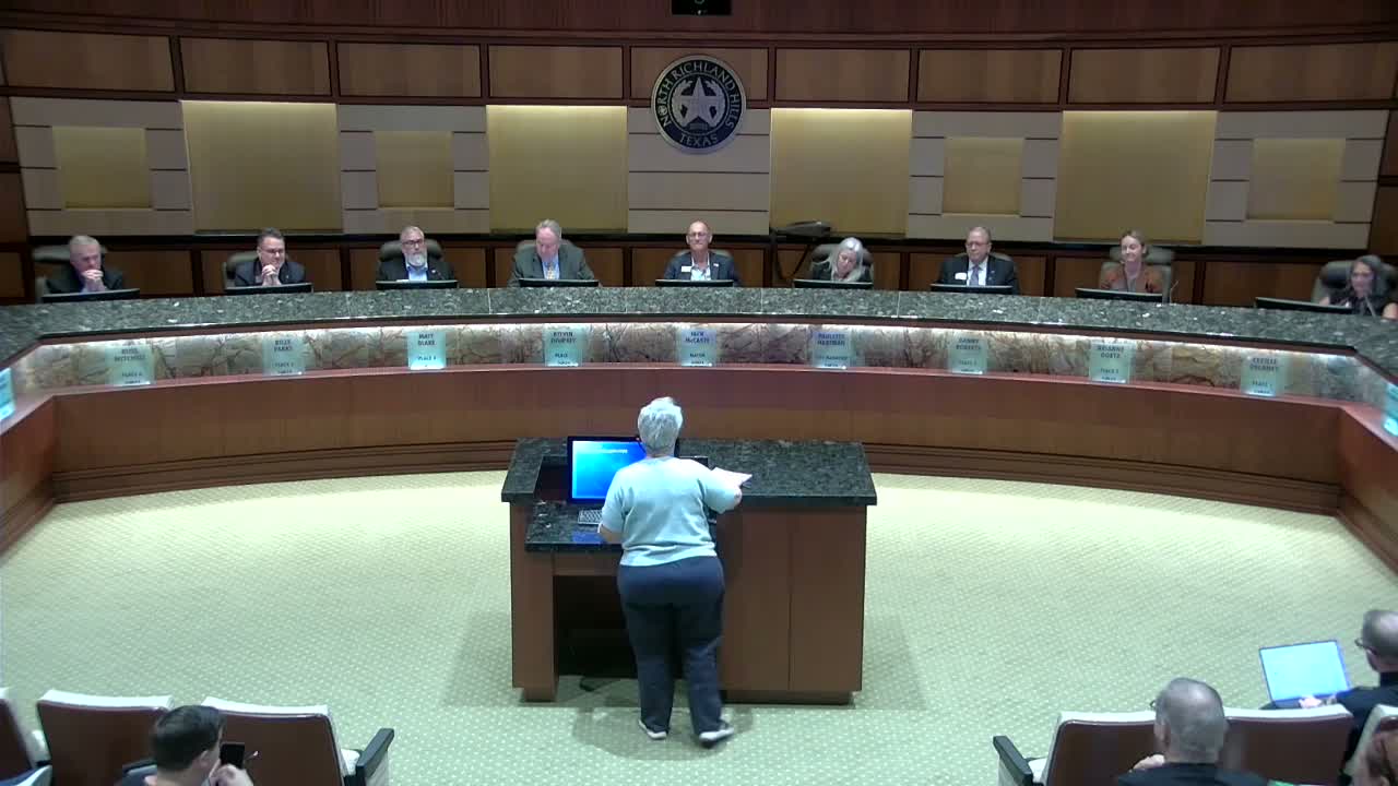 Mary Michaels, a Liberty Village HOA officer, urged action on Davis Boulevard safety and told council she had recorded speeding near her home and that "one child, 12 year old, has been killed there." Council asked her to share details by email and staff offered to follow up with TxDOT and police.
