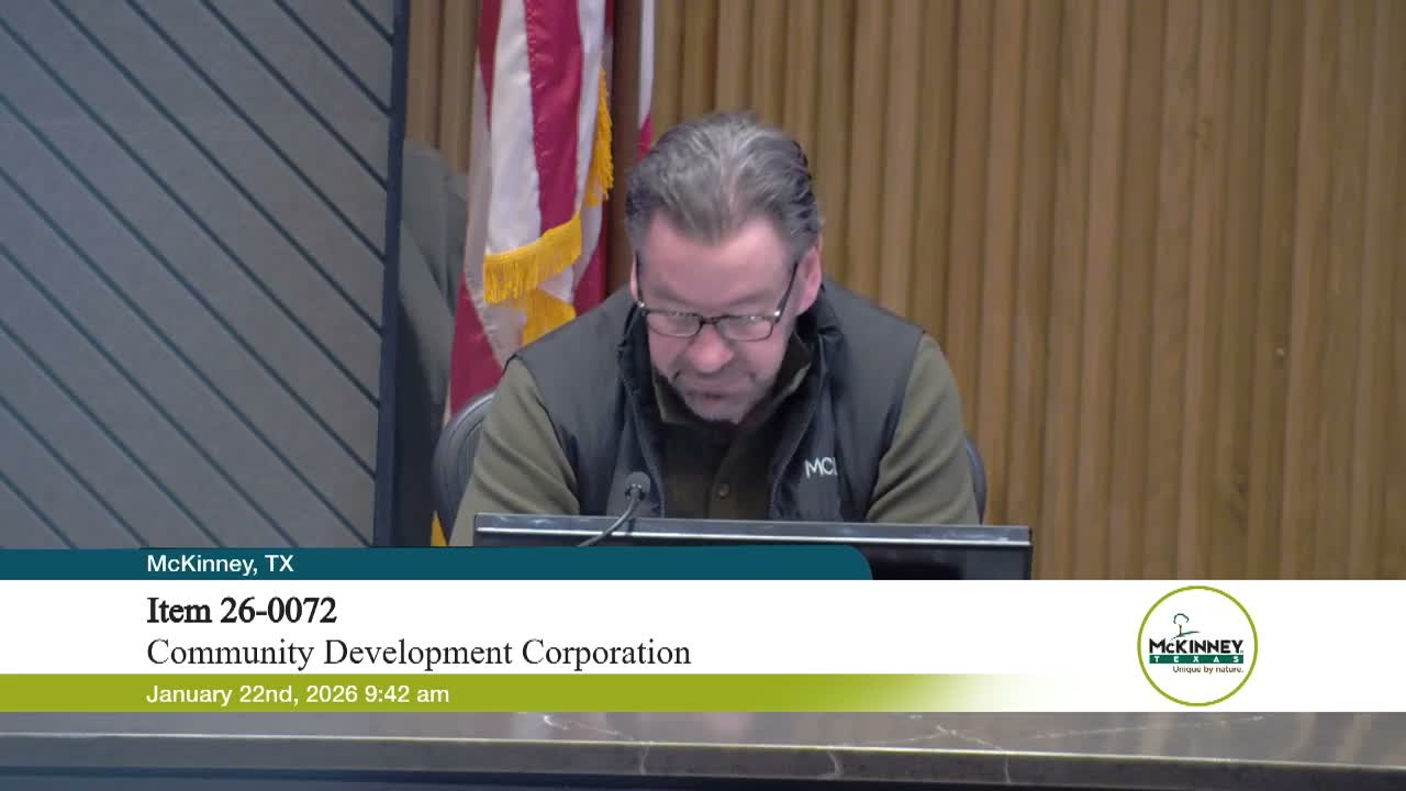 Community speakers including local attorney Bob Rotor and Cotton Mill co-owner McCall Casey emphasized historic preservation and neighborhood benefits, arguing the infrastructure investment would unlock a long-dormant part of East McKinney. "You unlock East McKinney, and you have created a great resource for the people that have lived in East McKinney for hundreds of years," Rotor said, noting overlay zoning and design controls for the district.