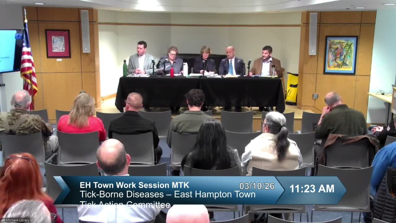 Medical experts and volunteers briefed the East Hampton Town Board on rising local risks from multiple tick-borne diseases, outlined prevention and targeted control options, and said the town will translate guidance into Spanish, post CDC-based resources, and return with wildlife-committee recommendations on deer-management options in 6–8 weeks.