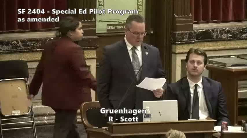 • Senate File 2404 — Adopted amendment S.5095 (ties implementation to appropriations); final passage recorded as 32 ayes, 13 nays. (See debate on special-education pilot centers.)