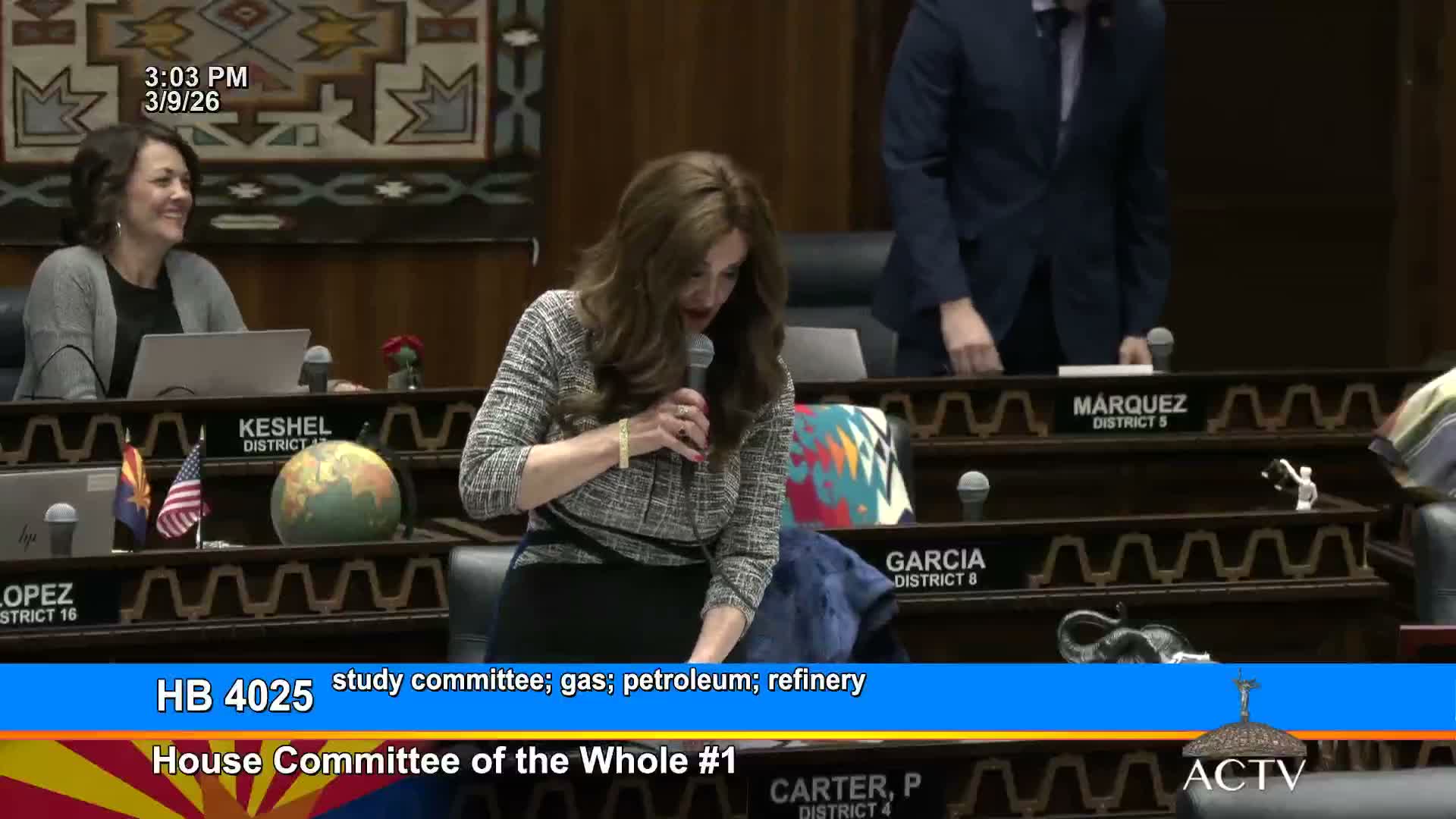 House members on March 9 gave a due-pass recommendation to House Bill 4025, which creates a study committee to examine whether Arizona should pursue building an oil refinery and related infrastructure. Representative Pamela Carter, the bill sponsor, said the state currently has no refineries (she noted that Arizona imports all gasoline blends and cited refinery closures in California), and described the study as a way to evaluate options to secure fuel supply chains and produce gasoline blends suitable for Arizona.