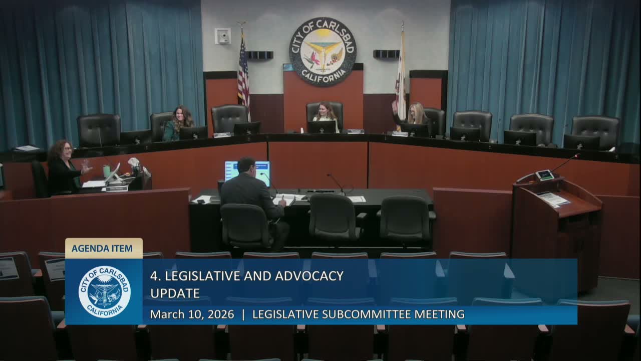 Why it matters: The supported items cover public‑safety (fentanyl penalties), consumer protection and e‑bike safety (device labeling and equipment requirements), and homelessness funding that could allow Carlsbad to access state resources directly. The committee emphasized alignment with the city’s legislative platform and directed staff to ensure any letters are consistent with that platform.