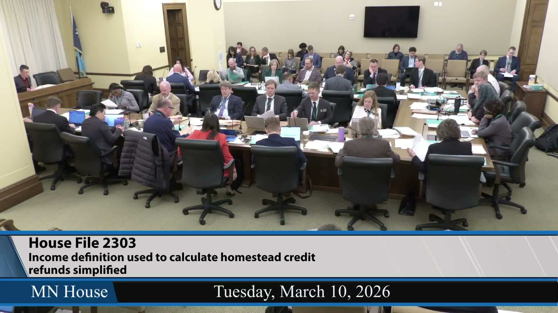 Nonpartisan staff and members noted the bill’s potential fiscal cost and that this session the change may prompt broader budget conversations. Representative Norris renewed his motion and HF 23‑03, as amended, was laid over for possible inclusion in the 2026 omnibus tax bill.