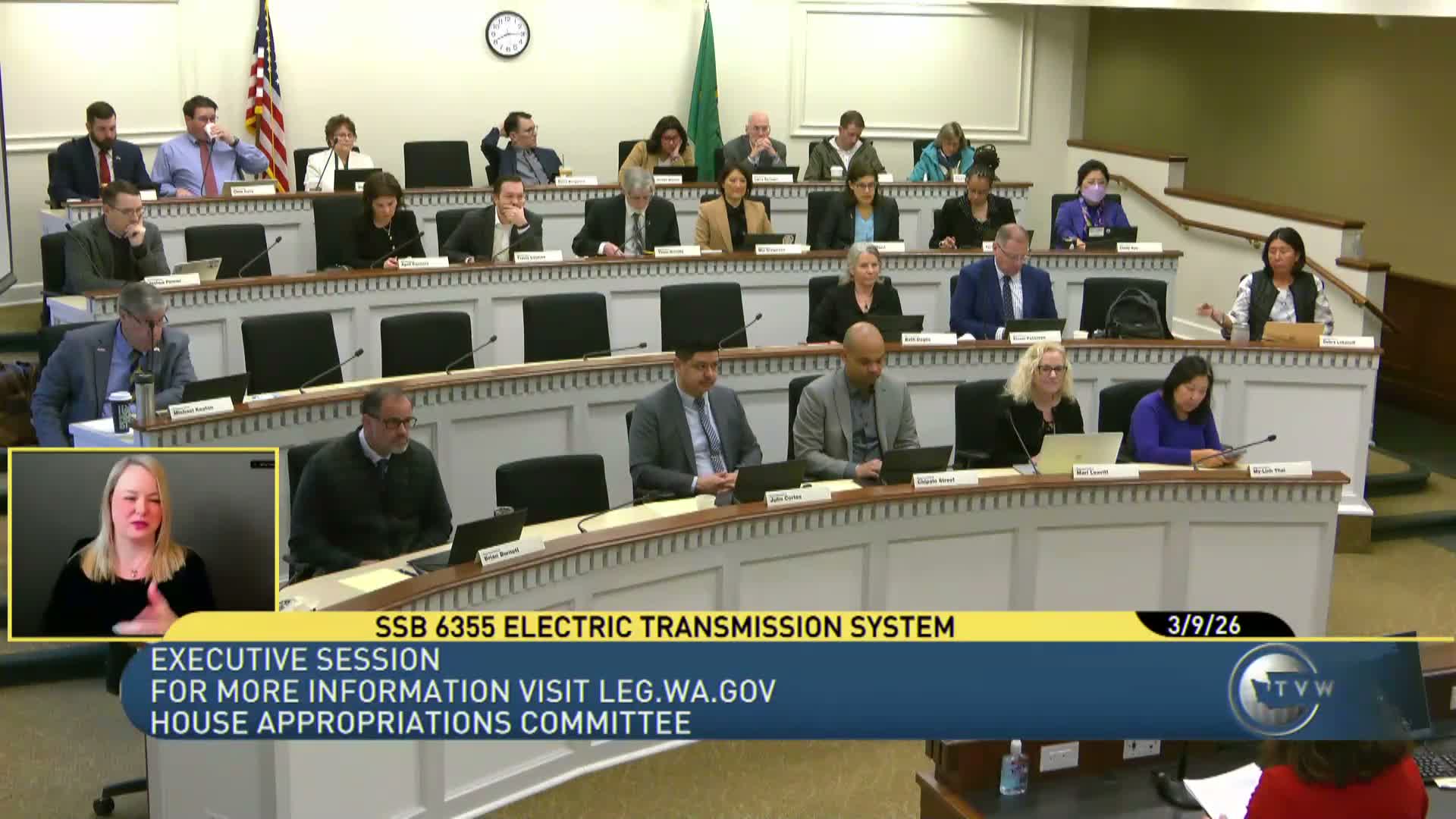 The House Appropriations Committee voted to report substitute Senate Bill 6355, which would establish the Washington Electric Transmission Authority, after a lengthy briefing and several amendment votes that touched on landowner consultation, board expertise and payments in lieu of taxes.