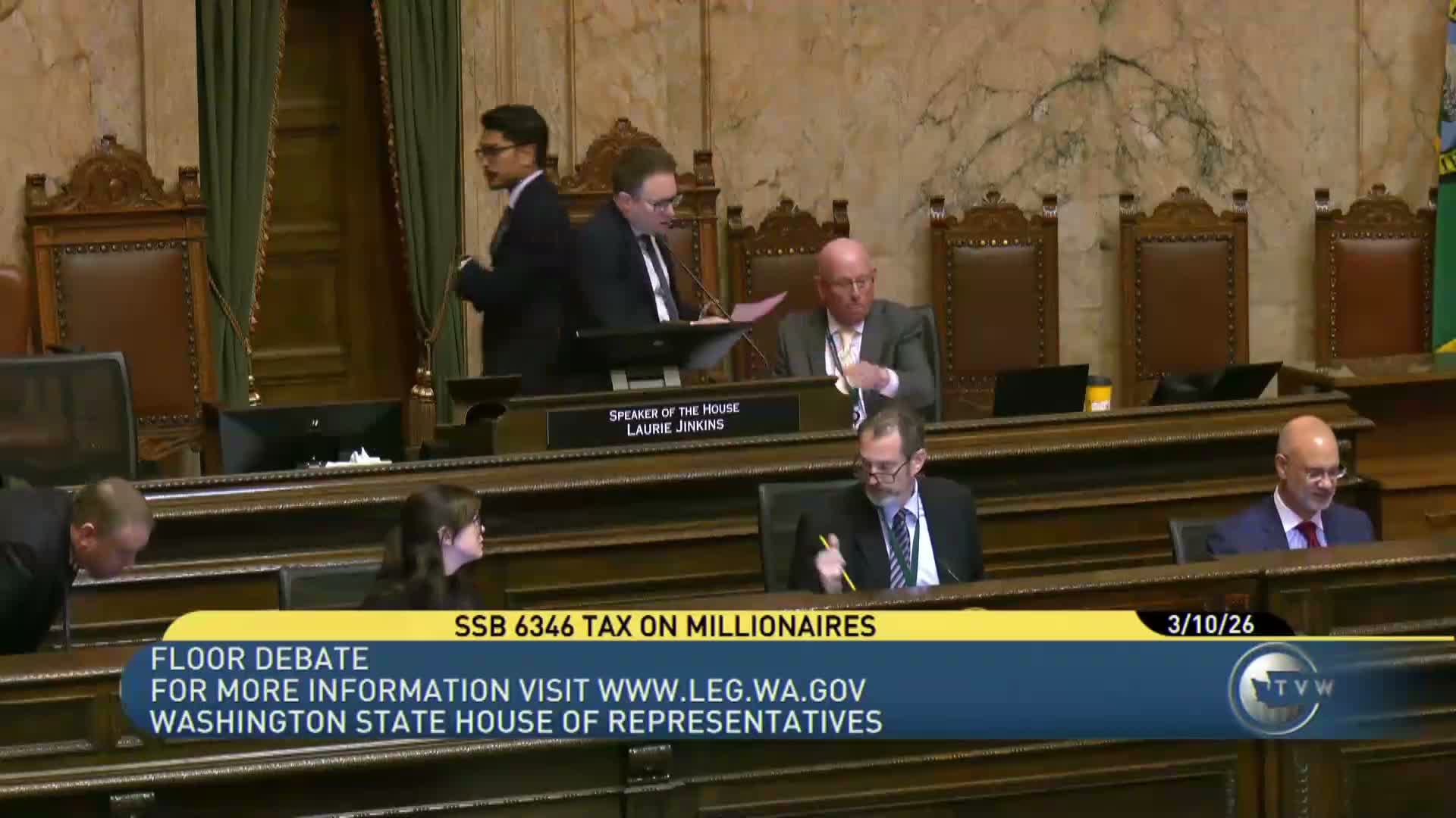 After nearly 24 hours of floor debate and dozens of roll-call votes on amendments, the Washington House approved a gross substitute to Senate Bill 6346, a new income-tax package aimed at taxing income above $1,000,000 and funding schools, child care and other programs. Final passage was 51 yeas, 46 nays, 1 excused.