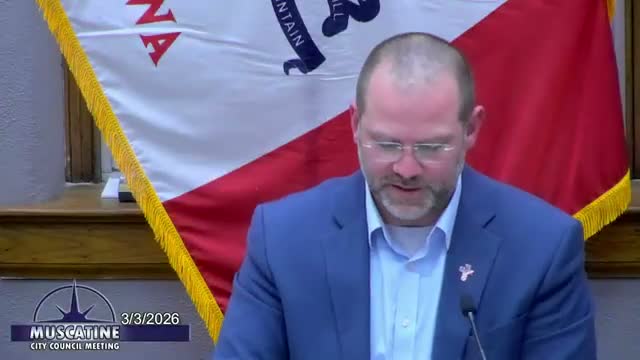 Public hearings and ordinances: Council approved the first reading of an ordinance to vacate and deed an undeveloped Fuller Street right-of-way to the adjoining property owner at 301 W. 11th Street. It also set public hearings for April 7, 2026, on proposed regulations for electric bikes and on the Muscatine Transit consolidated funding application for state and federal transit funds.