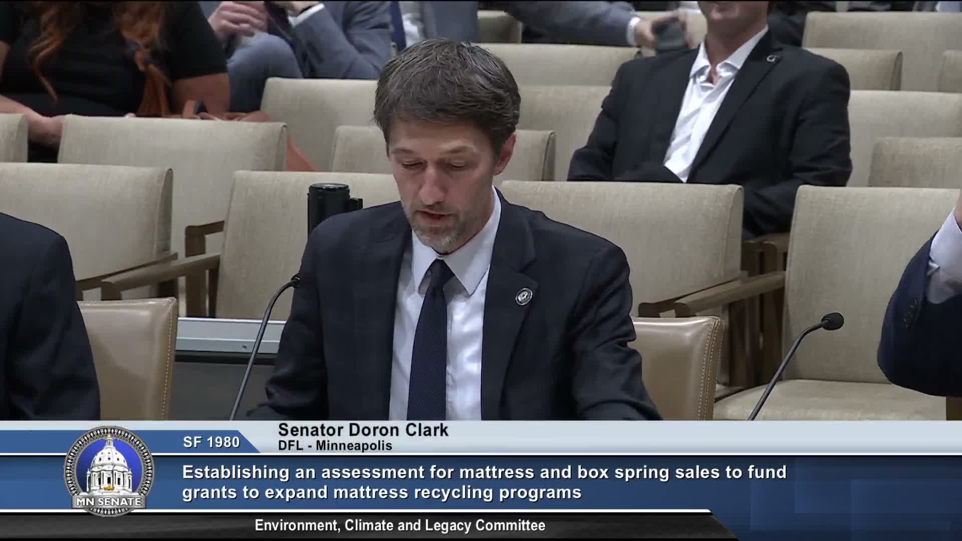 Sen. Clark on Tuesday told the Senate Committee on Environment, Climate and Legacy that Senate File 1980 creates “a straightforward product-based solution” to reduce bulky-mattress disposal and fund recycling access with a modest $10 point-of-sale recycling fee.