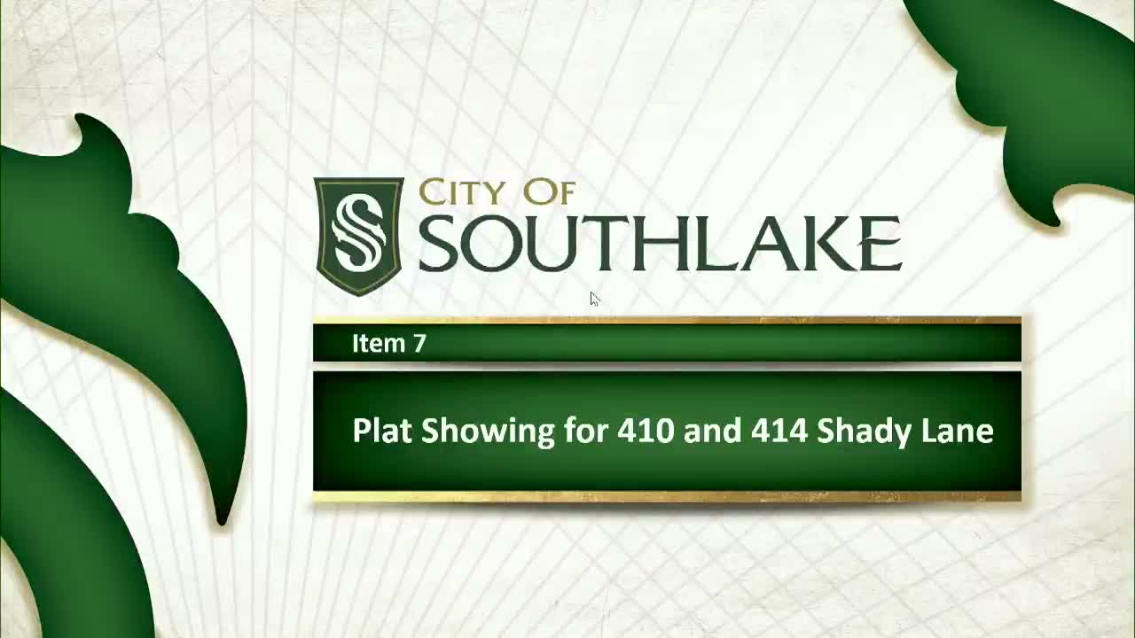 The City of Southlake Planning and Zoning Commission on Feb. 5 approved a plat to divide properties at 410 and 414 Shady Lane into two single‑family residential lots, roughly 1.14 acres each, on approximately 2.45 acres total.