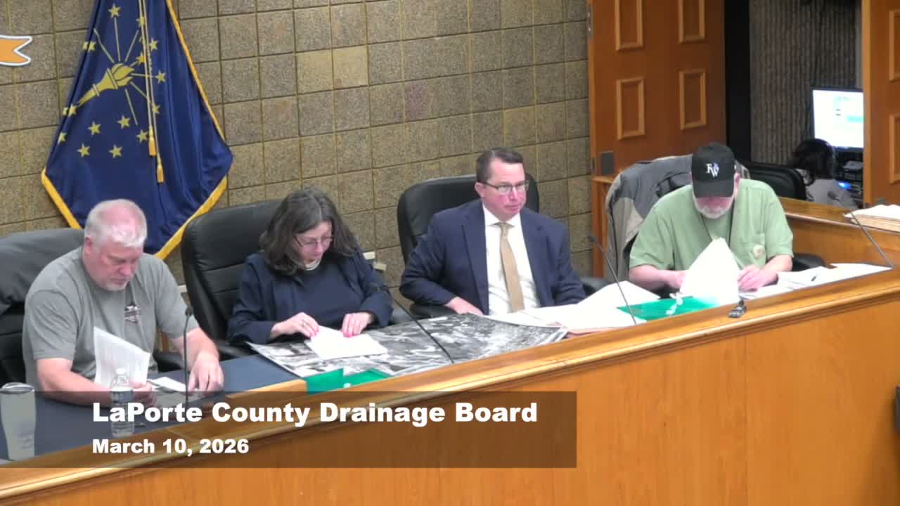 At a March 10 LaPorte County Drainage Board meeting, resident Louie Spear said the city and commercial developments have diverted water into a county ditch; the board said it is investigating, ordered inspections and bids for two sinkholes on the claimant's tile, and is coordinating with the state DNR.