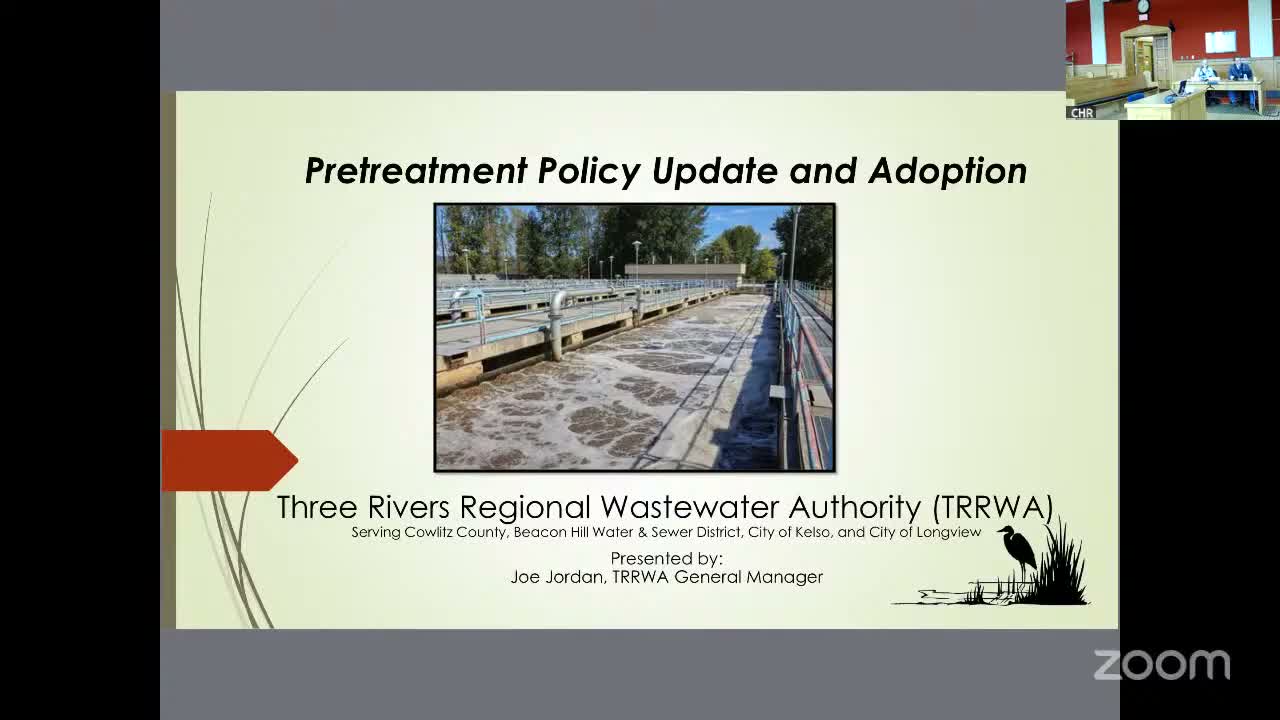 Joe Jordan, general manager of Turwa — the joint municipal utility authority that serves the cities and water districts in the region and Cowlitz County — presented an update to Turwa's pretreatment policy and asked the board to adopt it.