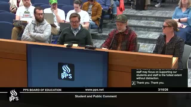 At public comment on March 10, Portland parents and staff urged the school board to address school safety and active‑transportation policy.
