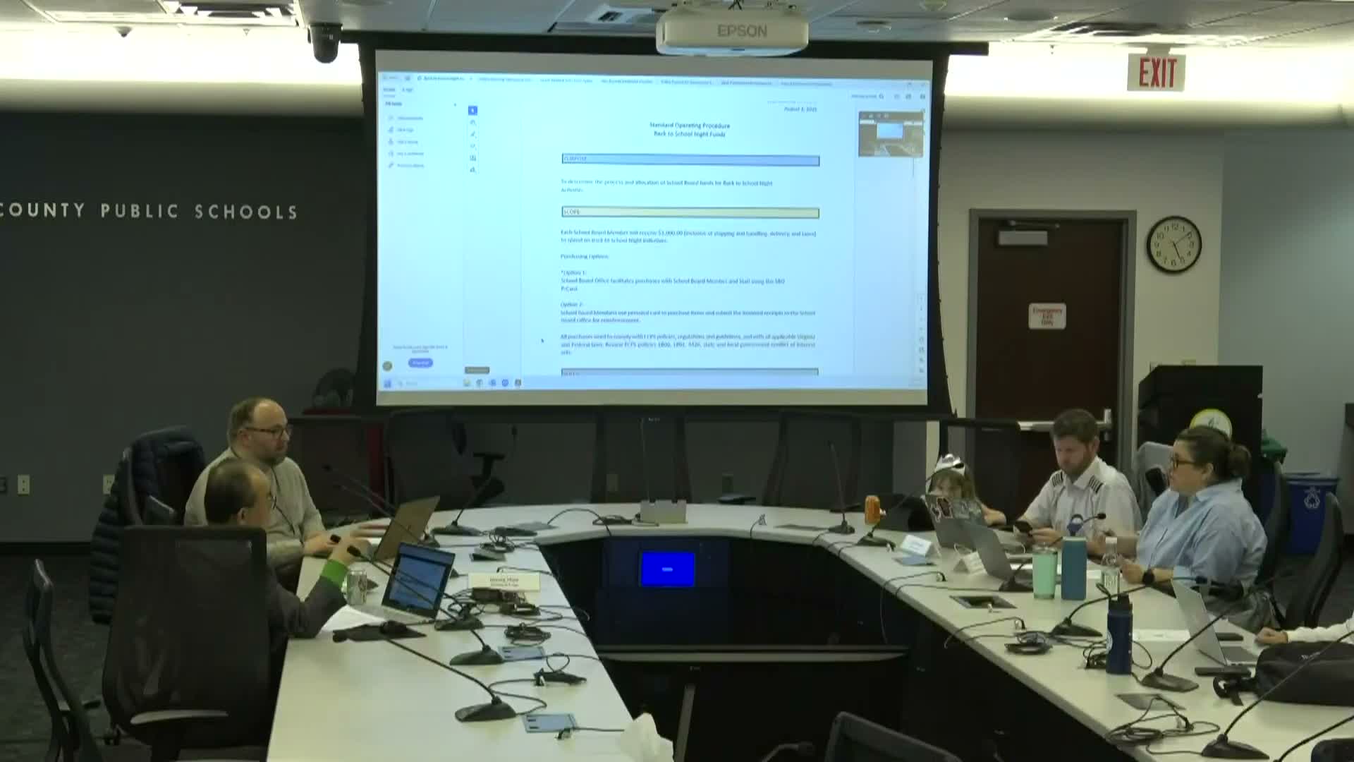 Committee members on March 4 debated revising an SOP that governs annual funds historically tied to back‑to‑school events, proposing a broader, year‑round "annual community engagement activities" or "board member support" fund to cover translation services, outreach materials, refreshments and similar engagement needs.