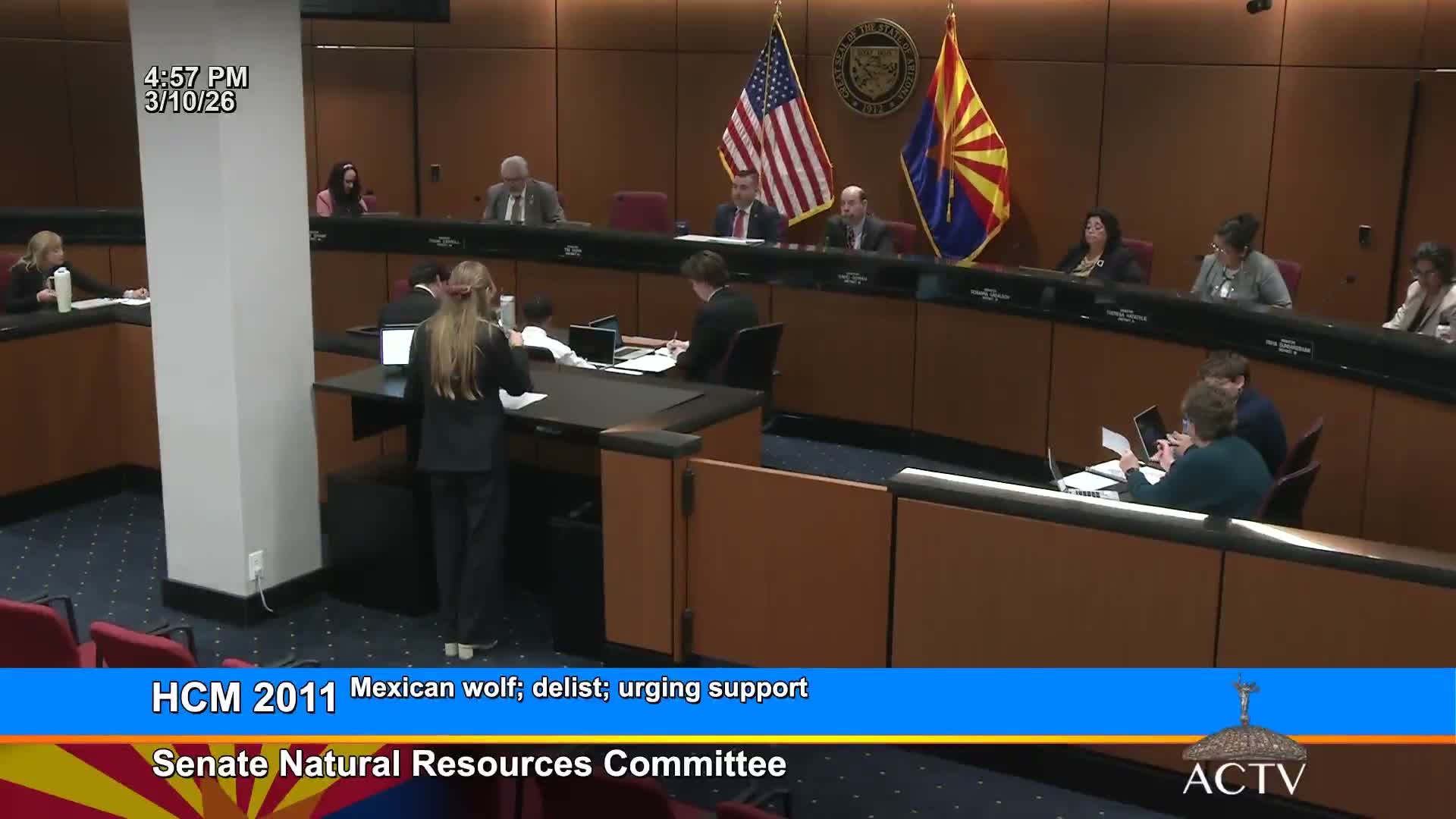 House Concurrent Memorial 2011, urging Congress to delist the Mexican gray wolf and turn management to states, received a due-pass recommendation after testimony from ranching advocates about livestock losses and from conservation groups cautioning that recovery is incomplete and delisting should remain science-driven.