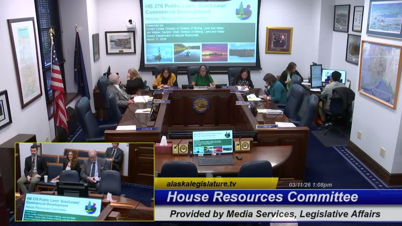 Juneau ' At a first hearing March 11, 2026, the Alaska House Resources Committee heard Department of Natural Resources officials present House Bill 276, legislation the department says would modernize state land-sale and lease procedures, help attract employers by pre-clearing "commercial development parks," and repeal or align certain outdated state land designations.