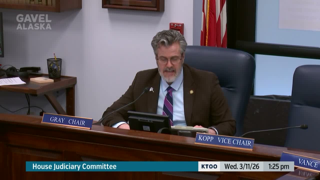 Sean Mills, House majority staff and counsel, presented House Joint Resolution 43 to the Alaska House Judiciary Committee on March 11, saying the measure affirms the legislature’s commitment to voter privacy and urges action to protect Alaskans after the federal government requested the state's full voter registration list.