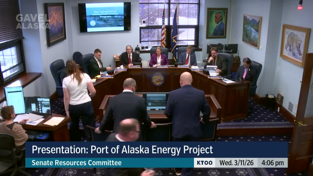Terry Emmatum, director of the Don Young Port of Alaska, and Eric Adams, program management consultant with Jacobs Engineering, told the Senate Resources Committee on March 11 that the Port Modernization Program (PAMP) is moving into a construction phase and that a battery energy storage system (BEST) is central to crane safety and port resilience. "The Don Young Port of Alaska is not simply a municipal asset. It is a statewide infrastructure," Emmatum said, framing the modernization as critical to fuel, food and supply chains across Southcentral Alaska.
