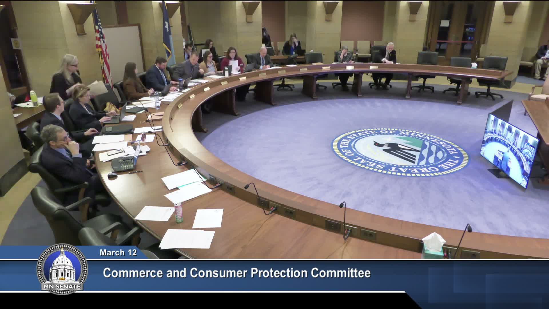 The Senate Commerce and Consumer Protection Committee took a series of procedural and substantive steps on March 12, 2026, moving some bills forward and laying others over for further work.
