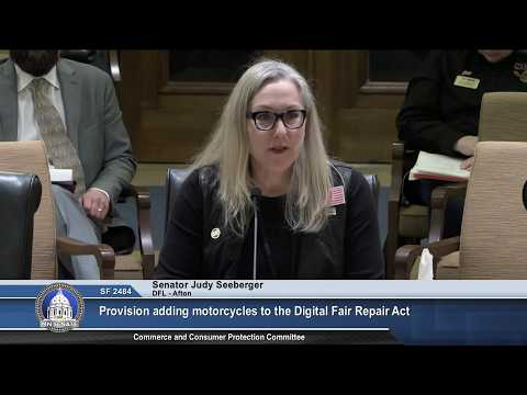 Senate File 2484, which would add motorcycles to Minnesota's Digital Fair Repair Act, drew sharply contrasting testimony on March 12, 2026, and was laid over by the Senate Commerce and Consumer Protection Committee for further consideration.