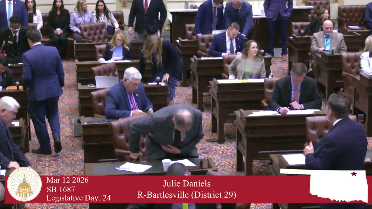 Senate Bill 1687, which clarifies written-driver testing and extends learner-permit timing, was amended on the floor and passed unanimously (45-0); sponsor Senator Hines said the bill strengthens existing allowances and corrects unclear draft language.