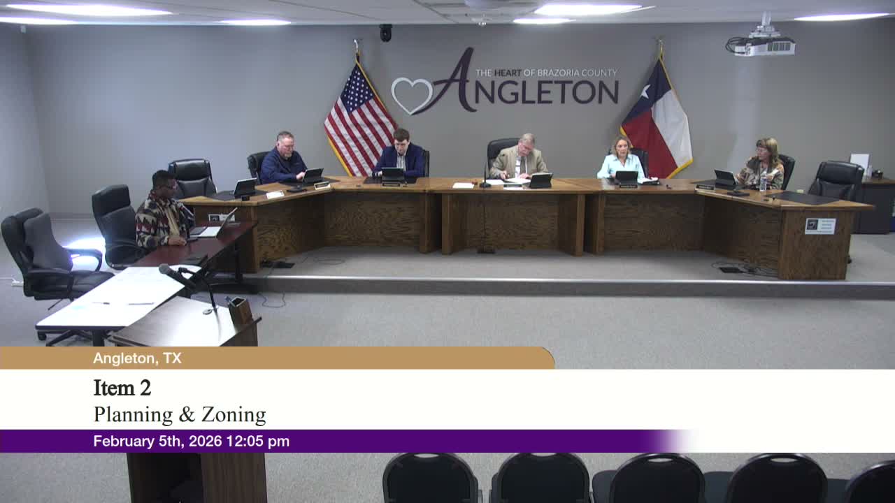 The Angleton Planning and Zoning Commission on Feb. 5 voted to recommend that City Council assign a special‑use permit overlay and zoning for an Angleton RV Park on about 10.646 acres along County Road 44, contingent on the council approving annexation and a utility service plan.