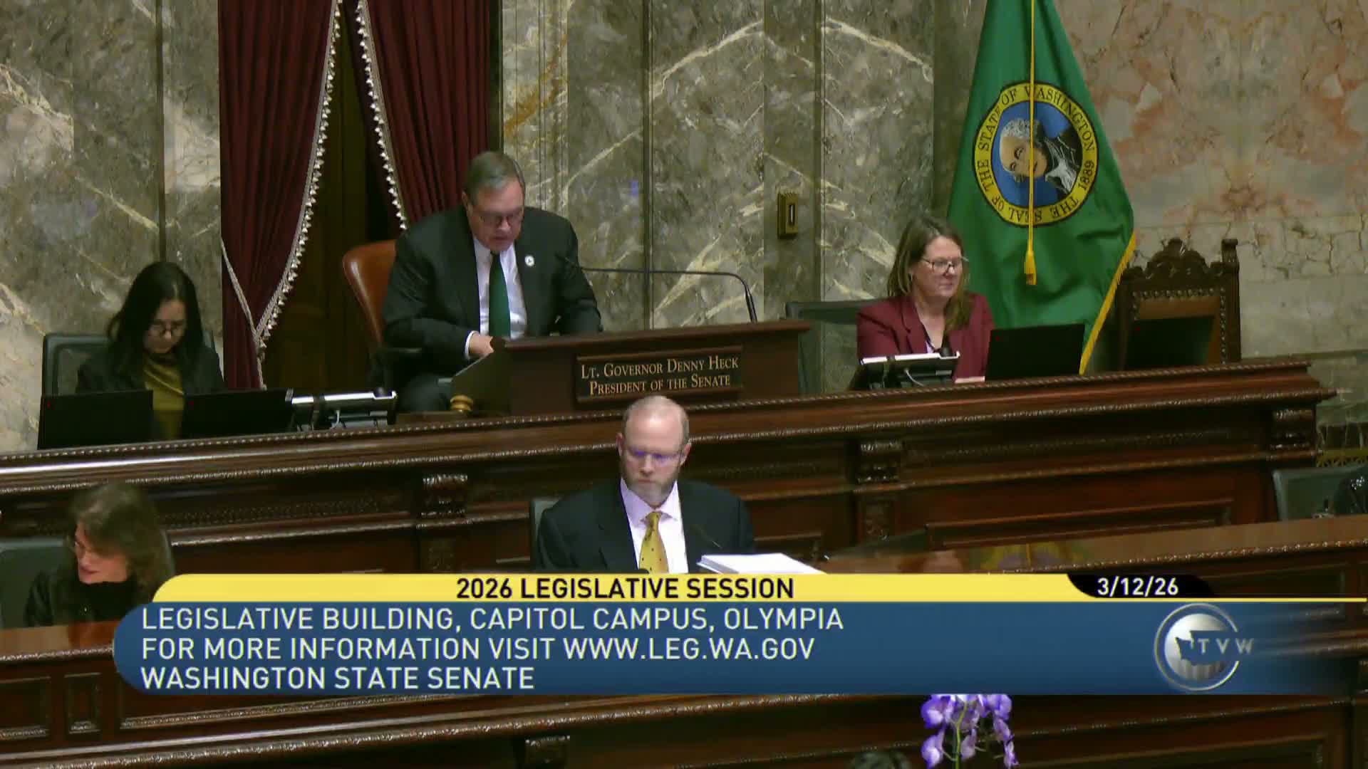 The Washington State Senate on March 12, 2026, moved through several unanimous or voice votes before adjourning the regular session sine die.