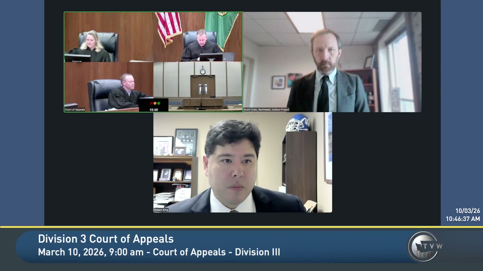 Scott Crane, counsel for appellant Carol Ruhle, told the court that when a landlord accepts substantial HUD funding for low-income housing, ‘‘they also must follow the federal rules that come with that funding.’’ Crane said those program restrictions become limitations on the state’s unlawful detainer statute and argued the landlord’s termination notices were inadequate because they failed to provide the explicit, mandatory meeting notice required by the rental agreement and HUD guidance. ‘‘There’s three reasons that the court should reverse,’’ Crane said, focusing on the notice content and on what he described as an inadequate show-cause hearing below.