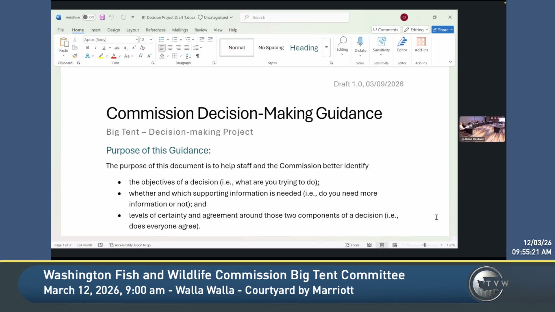 The Big Tent Committee reviewed and largely endorsed a new draft decision-making guidance designed to help commissioners and staff sequence and evaluate issues brought before the commission.