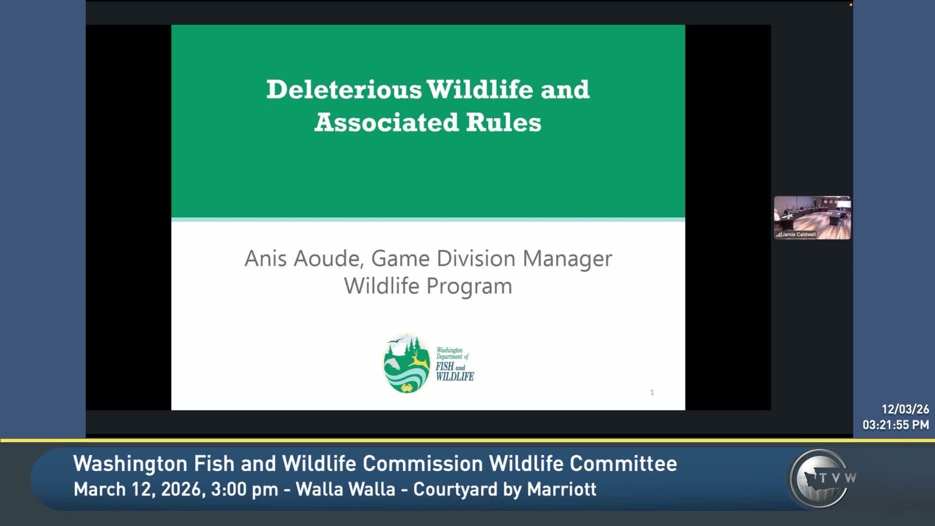 Commissioners asked whether the changes would affect zoos (Anise said zoos are covered under different permitting processes and would not be subject to the same captive‑cervid rule language), whether fallow deer are vectors for other parasites or pests, and whether surveys have established whether other deleterious species still exist in the state (Anise said the last known comprehensive survey was in 2016 and found none other than fallow deer and reindeer in captivity).