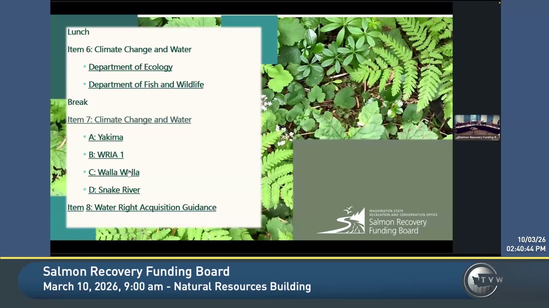 Salmon Recovery Funding Board (meeting hosted by the Recreation and Conservation Office) · March 10, 2026
