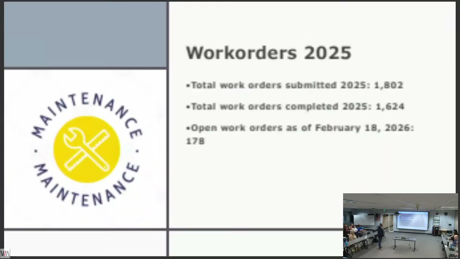 On maintenance, Silva said the district has moved from reactive repairs to preventive maintenance: completed work orders are trending down and a 16% reduction in work orders was reported; he credited new service agreements and two recently hired skilled maintenance technicians for the improvement. "We've been able to reduce, drop our work orders by 16%," Silva said, and argued proactive work will lengthen equipment life and reduce emergency call‑outs.