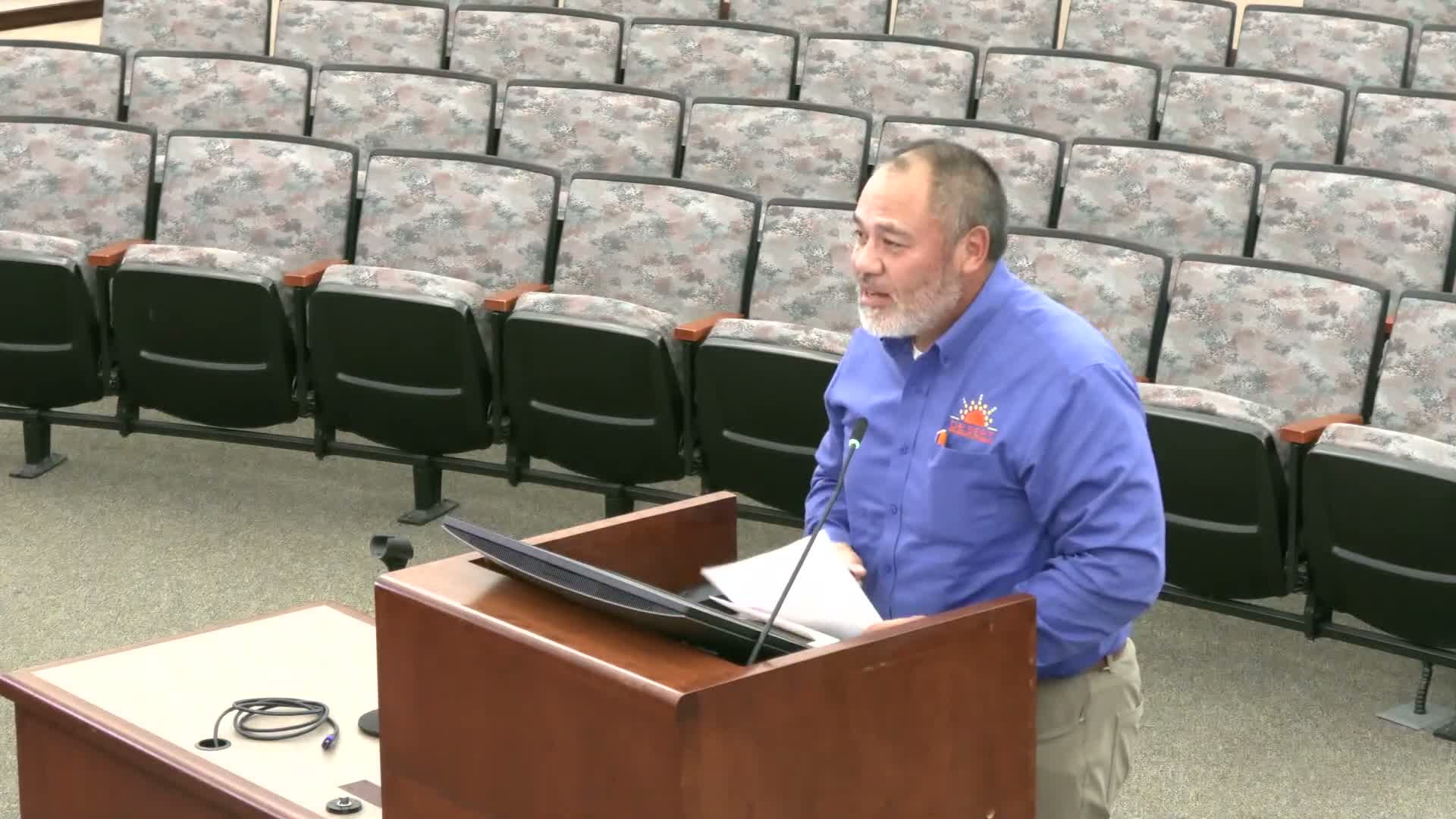 Smallow described recent maintenance work, including replacing roughly 160 square feet of sidewalk at Dennis Keats Park (the presenter stated a cost reported as about $51,000), reseating the small soccer field at Esperanza Park with a short closure anticipated, shade-cloth replacement and about 4,000 square feet of sod replacement at Panorama Dog Park, and electrical repair at a splash pad. Smallow said lighting and parking-lot work is underway at Ocotillo Park and that Century and Patriot parks have required little additional work.