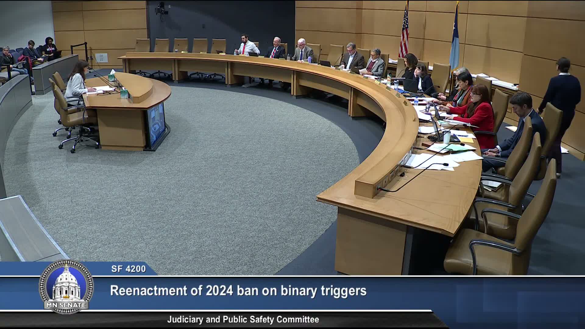 Sen. Gustafson presented SF 4200, which clarifies the state's definition of a ‘‘trigger activator’’ so that devices designed to substantially increase a firearm’s firing rate would be covered under Minnesota law. The sponsor cited a February 2024 shooting and said the change is intended to make the statute clear and enforceable.