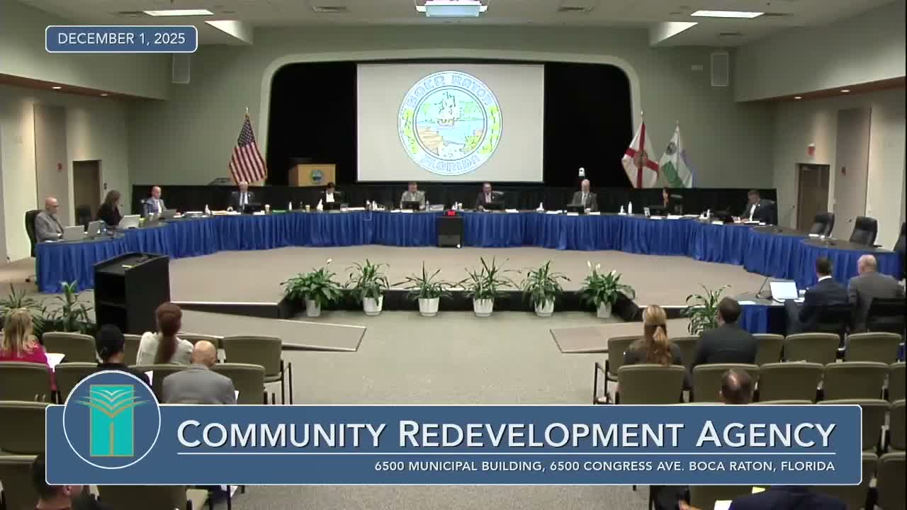 Deputy City Manager Kameho told the Boca Raton Community Redevelopment Agency on Dec. 1 that staff will bring a series of informational items and updates to upcoming CRA meetings.