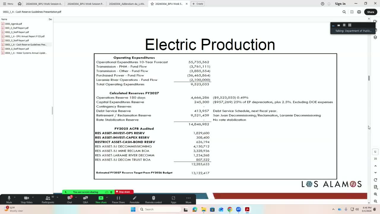 Board members asked about coordination with LANL on well‑station metering and an arc‑flash incident during a LANL meter upgrade; staff said meter-loop ownership resides with LANL and noted the county will coordinate safety and metering accuracy reviews. The board asked members to keep Kathy apprised of travel plans because upcoming meetings risk tighter quorums.