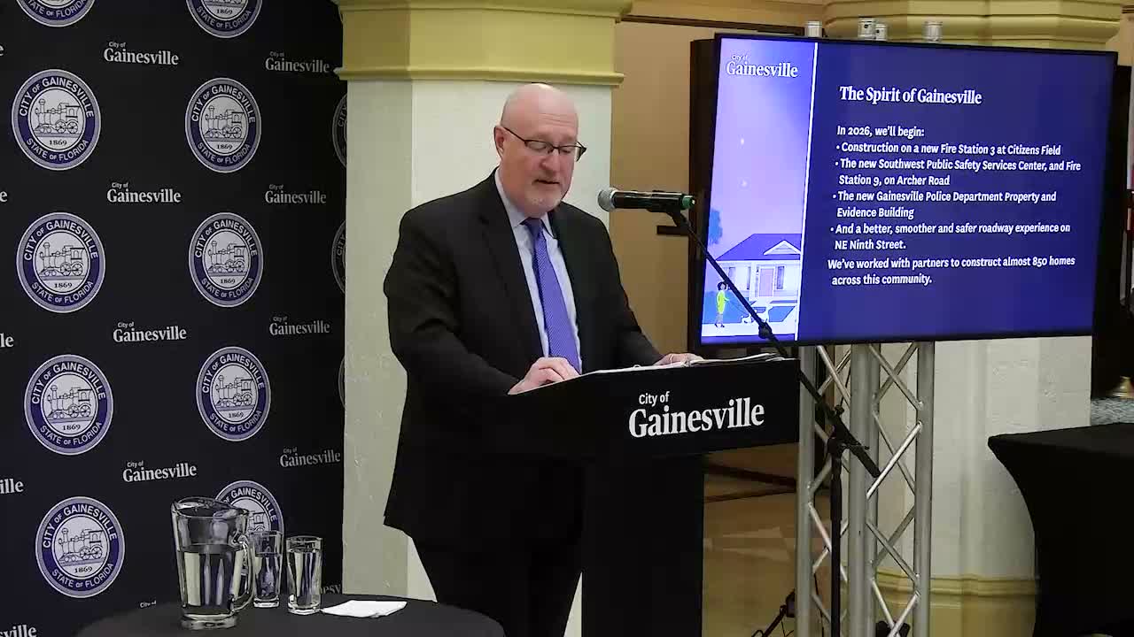 The address tied infrastructure, housing and public-safety initiatives to the broader goal of making Gainesville "safe, clean, and affordable," with the mayor saying the commission expects construction on many of the announced projects to begin in 2026.