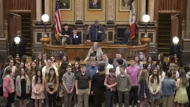 The Iowa House of Representatives opened its session with a prayer from Representative Kniff McCullough of Maryann and the Pledge of Allegiance led by Evan Cam, a student from Pella Middle School, then recessed on a voice vote so members could attend party caucuses.