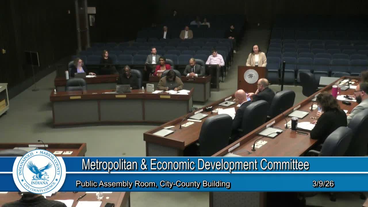 A City-County Council committee voted to approve a payment-in-lieu-of-taxes (PILOT) pilot to support The Grove At Pleasant Run, a proposed 160-unit affordable housing development in District 24, following a presentation from TWG development representative Marissa Kanatzer.