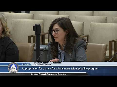 Senator Gustafson presented Senate File 4183 to create a Local News Talent Pipeline program that would place emerging and early‑career journalists in Minnesota’s community newsrooms across print, radio, TV and digital platforms, modeled on a program run by the Minnesota News Media Network.