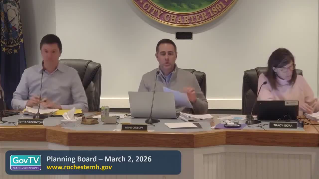The Rochester Planning Board approved a site-plan amendment on March 2 allowing Any Events & Transportation to convert a former car dealership at 16 Milton Road into a vehicle-service and school-bus parking facility, subject to conditions from planning staff.