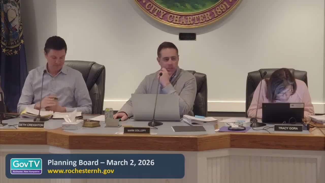 The Rochester Planning Board approved a waiver allowing overhead utilities for two lots on Salmon Falls Road after the applicant said undergrounding would require wetland disturbance; planning staff recommended denial citing the city’s 20-year undergrounding requirement. The board split, recording two nays before approving the waiver.