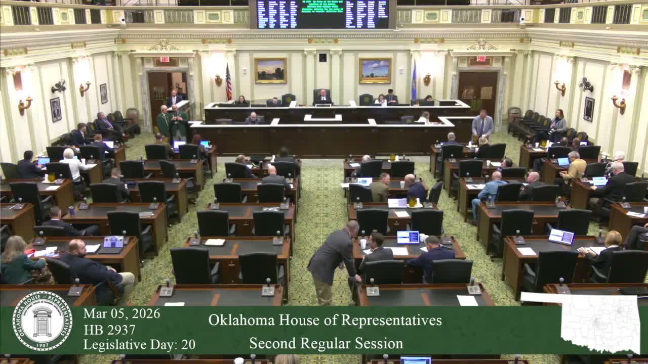 The Oklahoma House advanced and passed House Bill 29-37, a technical change to extend lawful carry onto boats, after questions about alcohol and enforcement; the floor also cleared a package of administrative and criminal-justice bills ranging from fee increases to statutory cleanups.