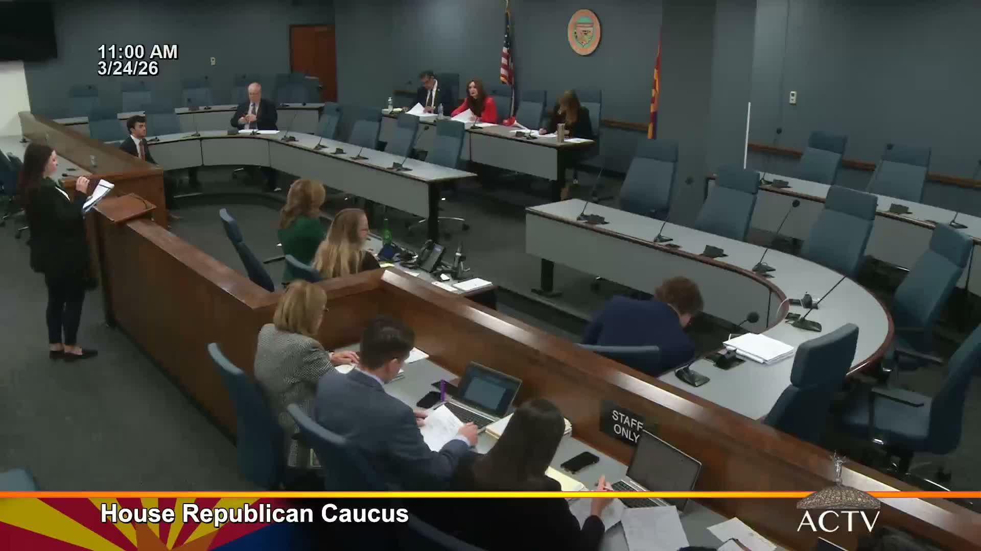 The Arizona Senate Republican caucus moved through a broad third‑reading consent calendar that included bills to create a new space‑themed specialty license plate, tighten rules for election equipment, and add photo‑ID verification for county recorder documents.