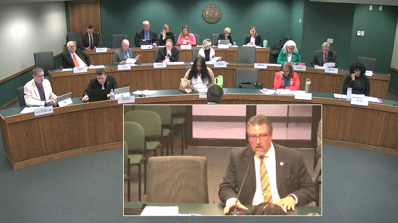 Sen. Joe Nicola told the committee SB 1351 would reduce Independence school board terms from six to three years and he accepted an amendment to excuse a student one time per scheduled election when accompanying a parent to vote; Missouri NEA testified in favor.