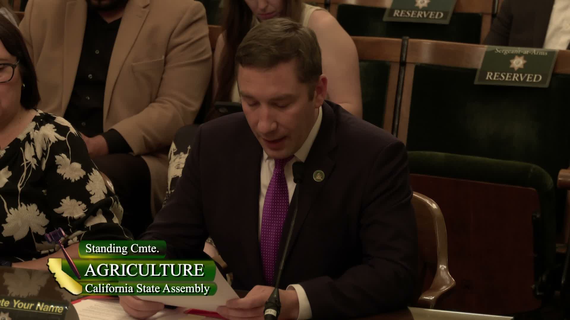 The Assembly Agriculture Committee voted to send AB 1674 to the Housing and Community Development Committee after witnesses and members debated a provision that could condition housing approvals on preserving grocery-store space; the author pledged to work with opponents on amendments.