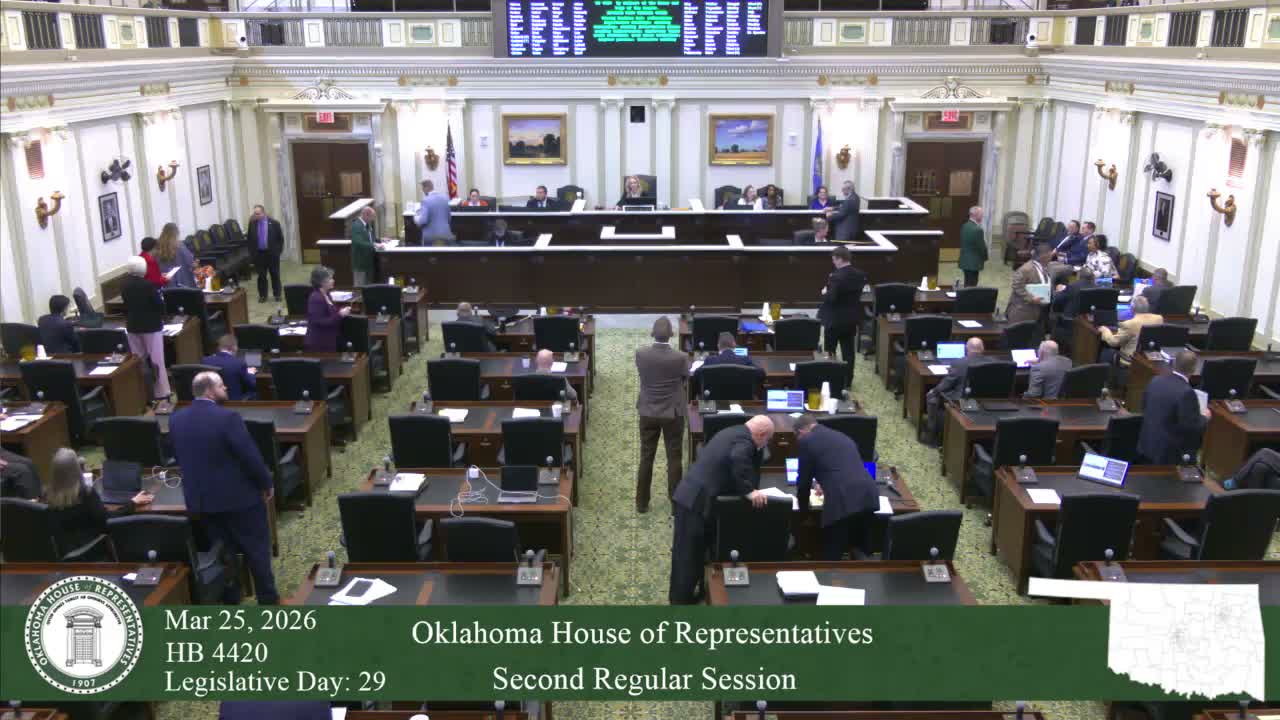 The Oklahoma House voted 86–6 to pass House Bill 4,420, the Strong Readers Act, reinstating third‑grade retention with phased implementation, a revised SRA funding formula (60/30/10) and summer teacher credentialing academies with $3,000 stipends; the House also approved an emergency clause to begin summer programming.