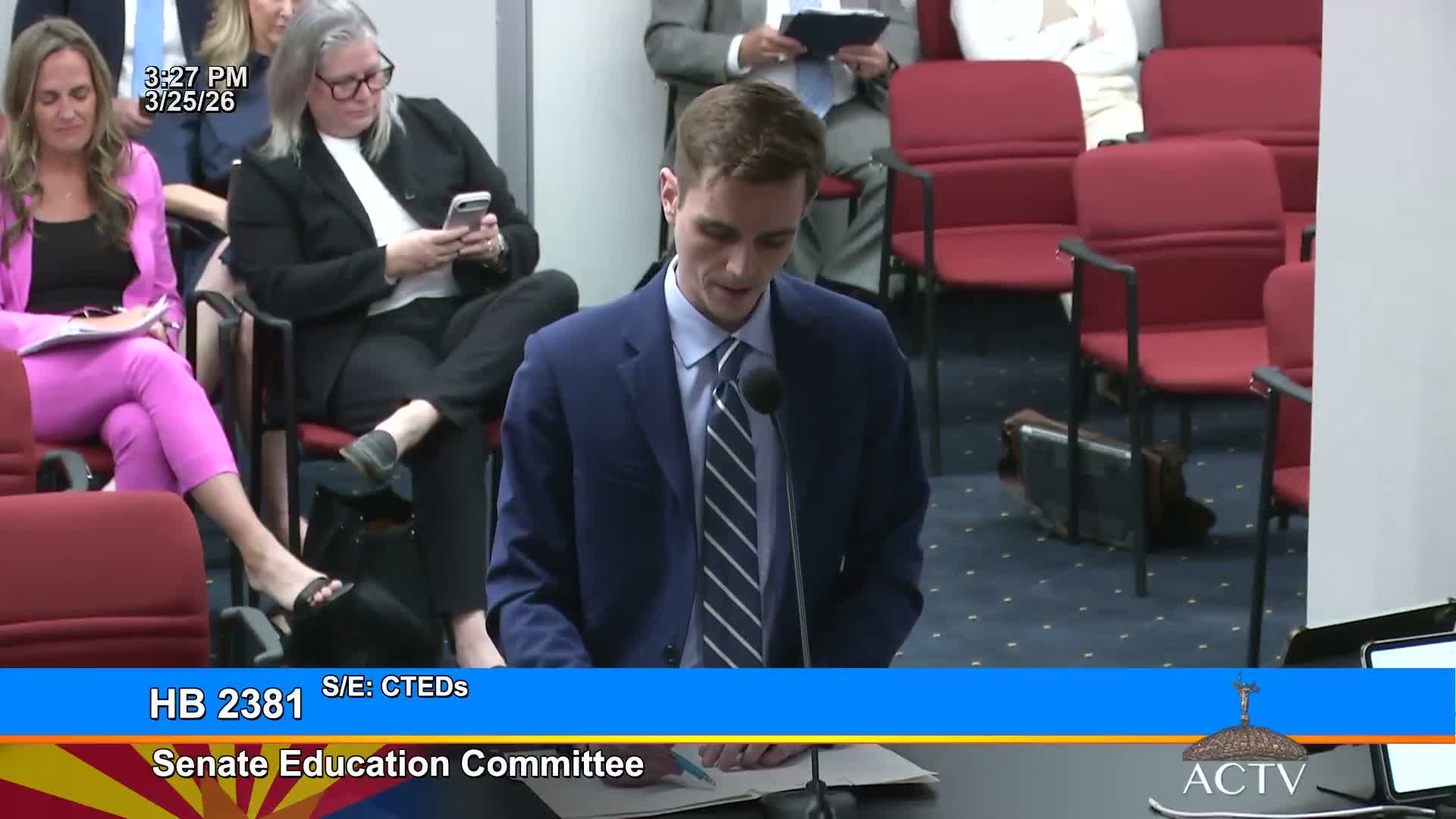 A strike‑everything amendment to HB 2381 that would change CTED intergovernmental agreements, apportionment and mediation requirements passed the Senate Education Committee amid dispute between EVIT and member districts. Sponsors said the bill addresses Auditor General findings; opponents warned it could complicate ongoing litigation.
