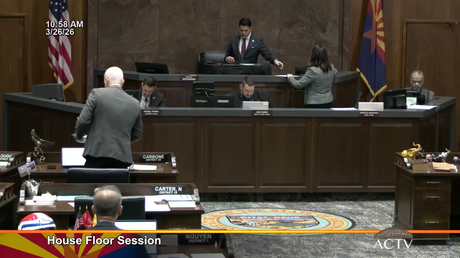 The Arizona House processed a slate of senate bills on March 26, adopting measures and handling committee reports before adjourning for the week.