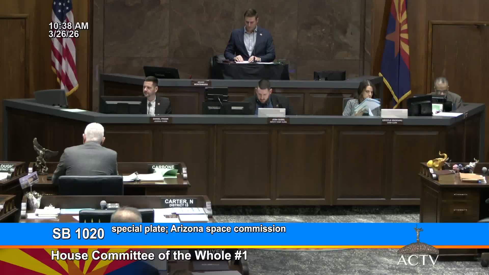 The Arizona House advanced Senate Bill 1020 on March 26 after rejecting a floor amendment that would have added a community-college access and success specialty license plate.