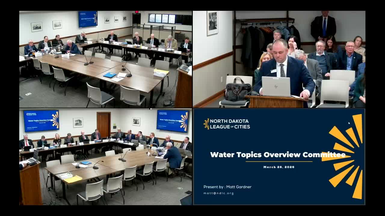 This article is based on testimony and survey results presented by Matt Gardner (North Dakota League of Cities) and comments from Eric Volk (North Dakota Rural Water) during the Water Topics Overview Committee meeting.